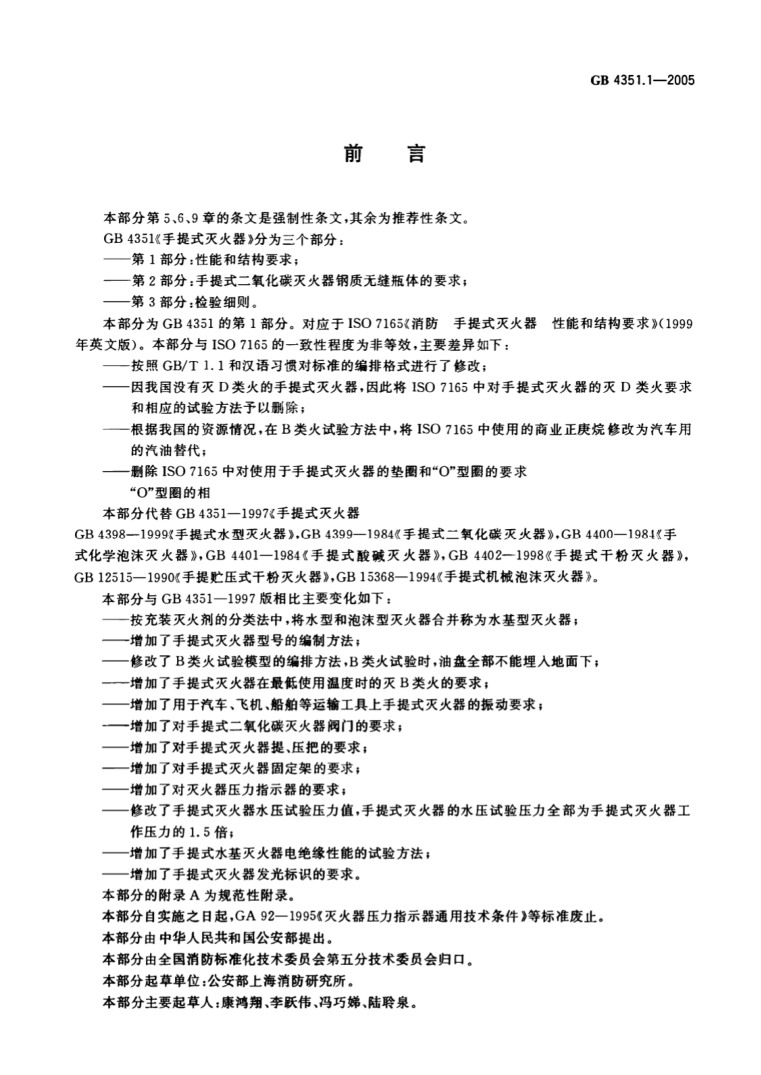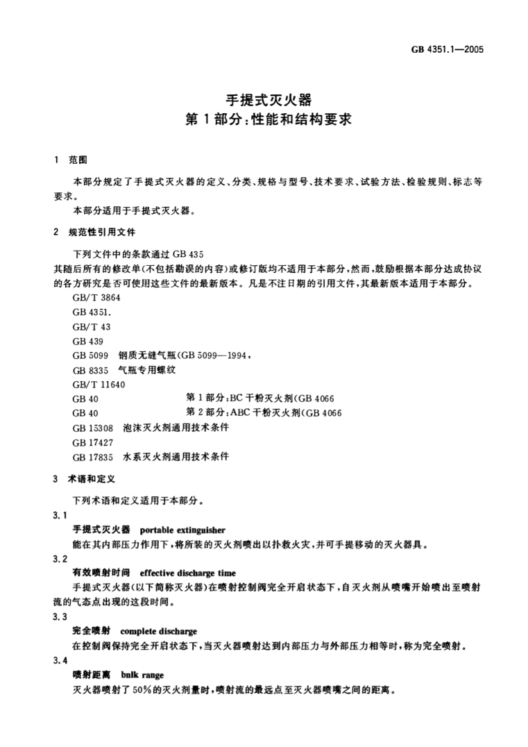 GB 4351.1-2005手提式灭火器第1部分性能和结构要求