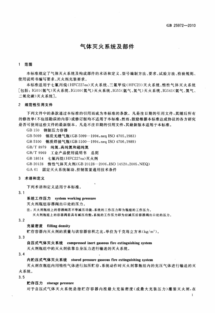 GB 25972-2010气体灭火系统及部件