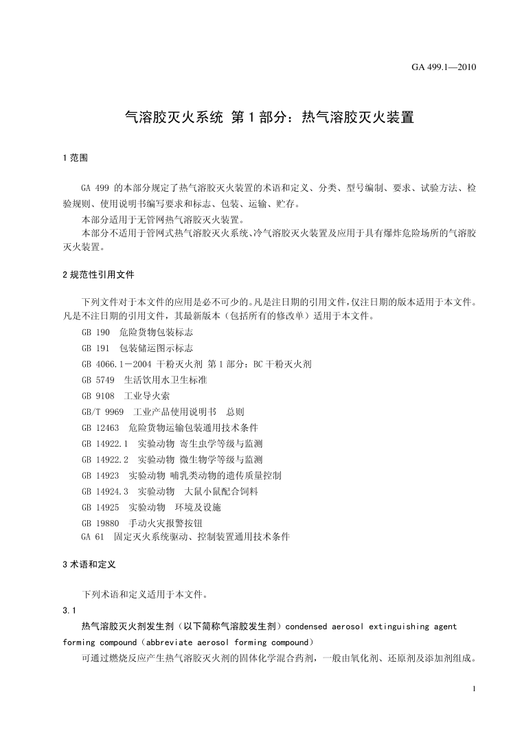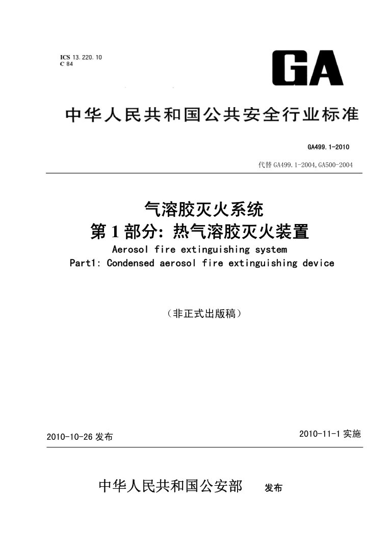 GA 499.1气溶胶灭火系统 第1部分 热气溶胶灭火装置