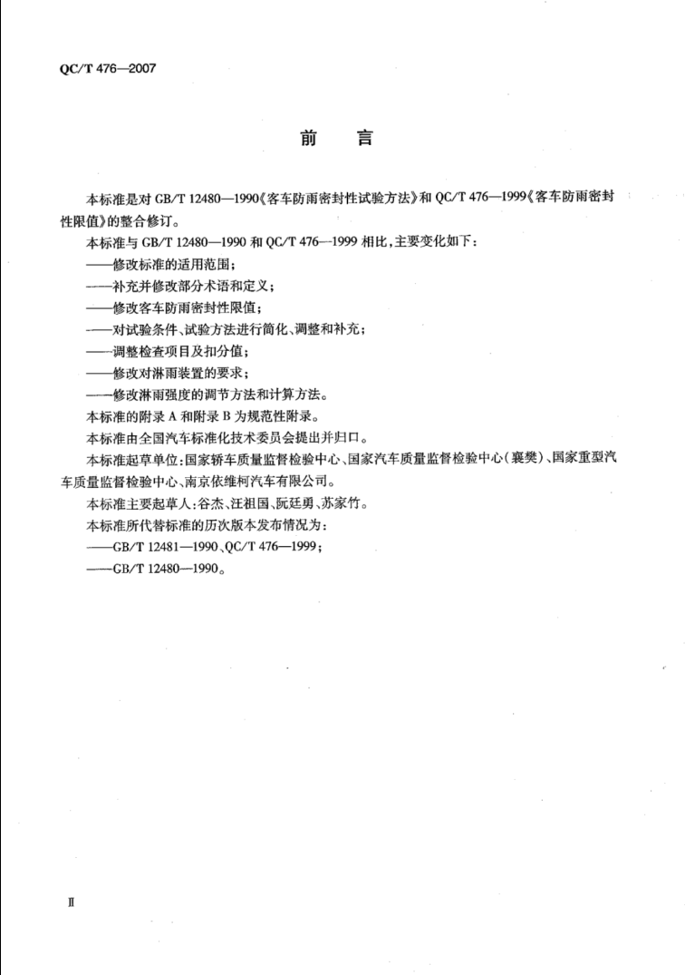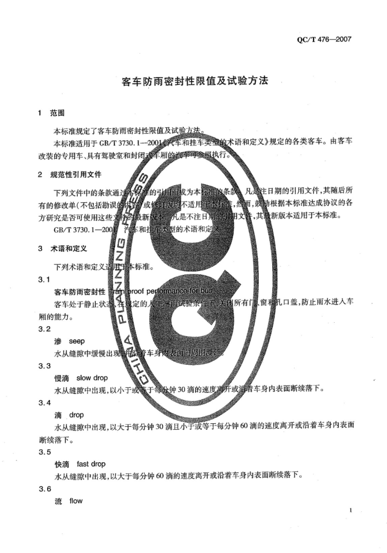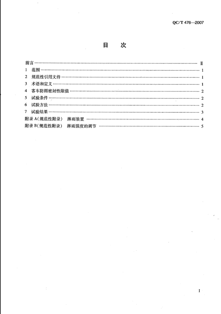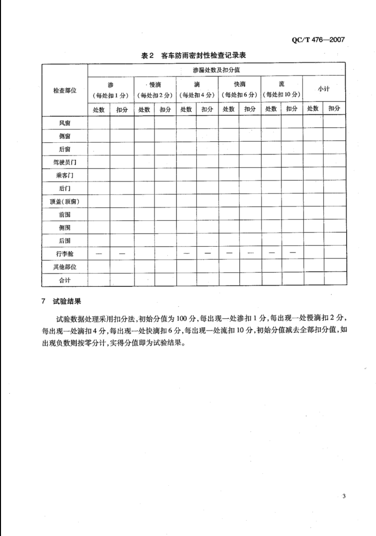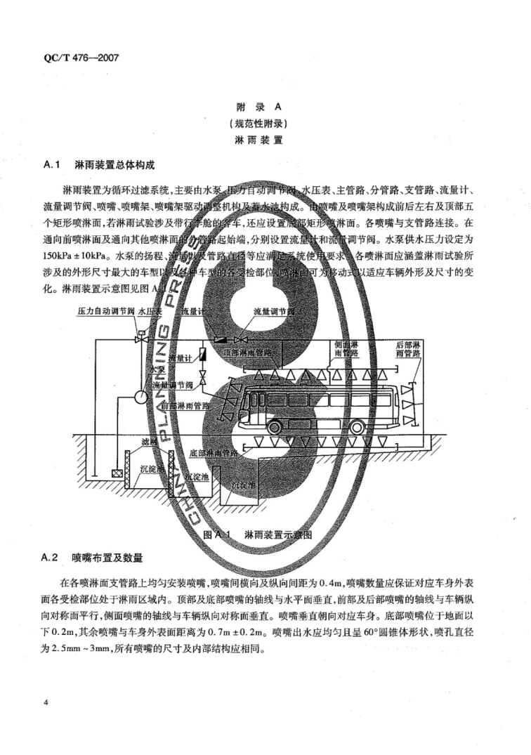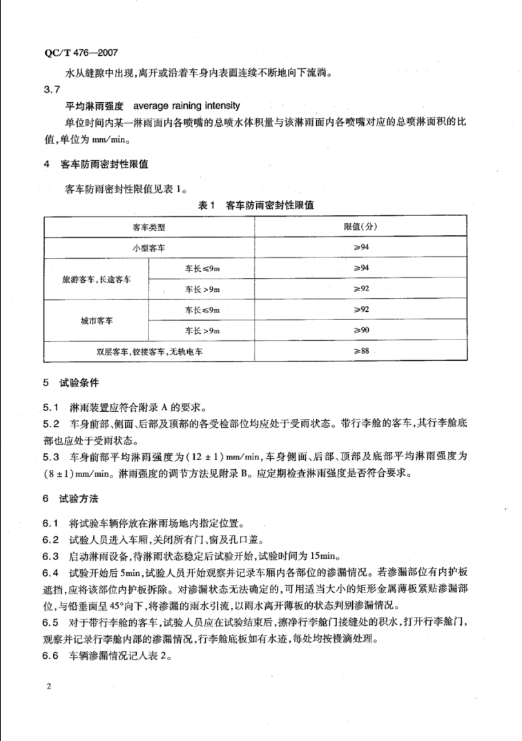 QC/T 476-2007《客车防雨密封性限值及试验方法》