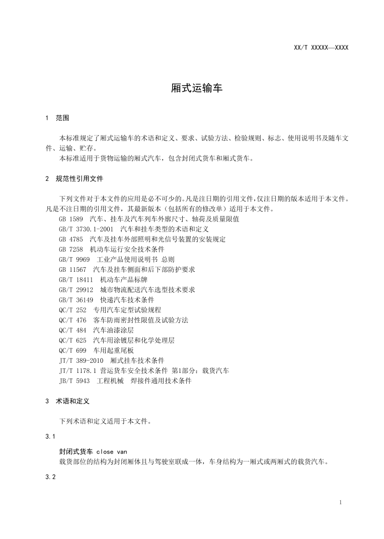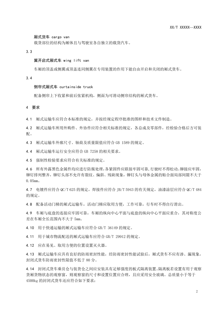 QC/T453-2019《厢式运输车》