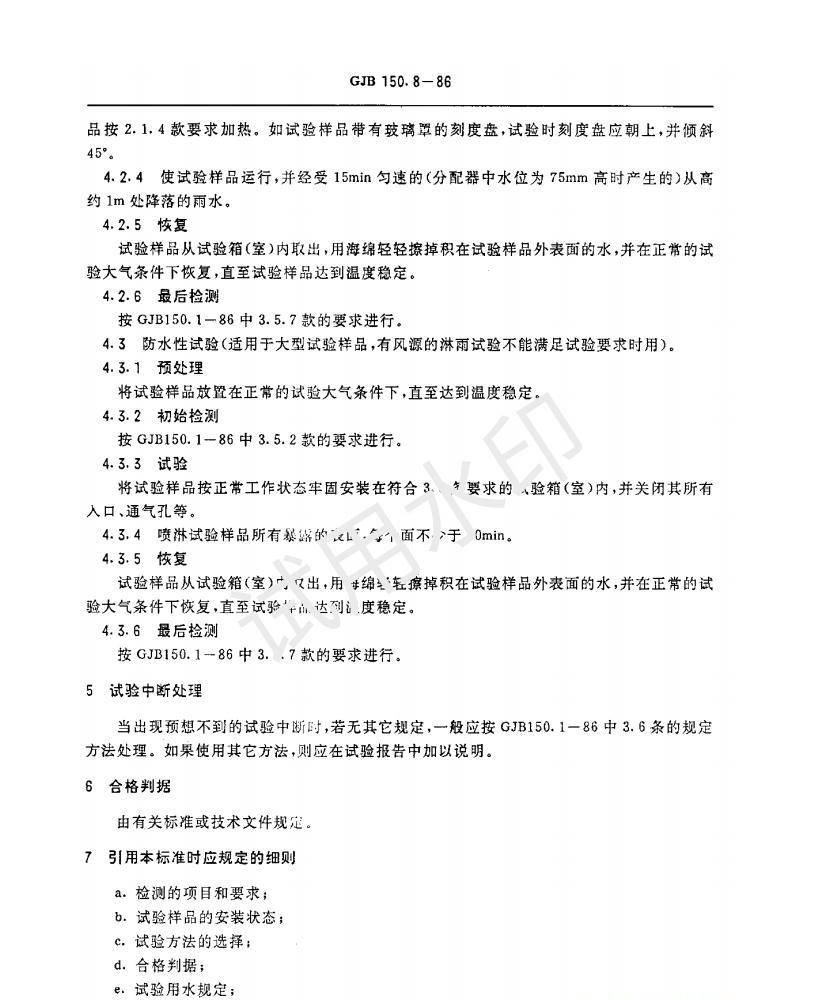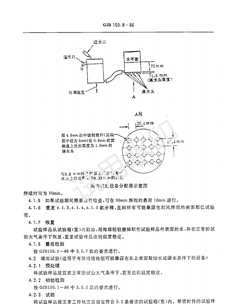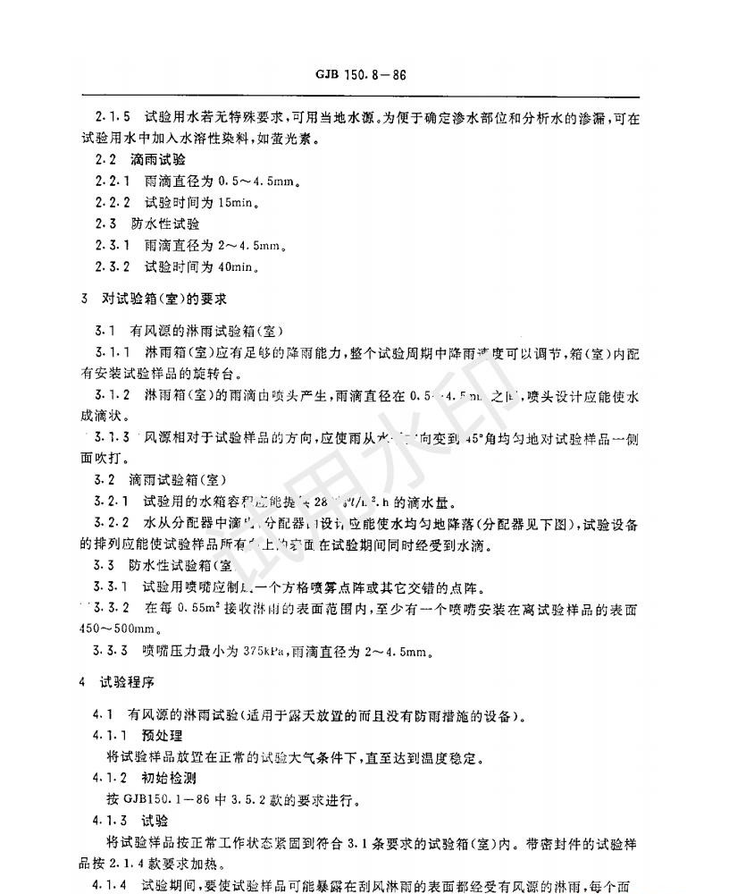 GJB150.8-1986 《军用设备淋雨试验方法》