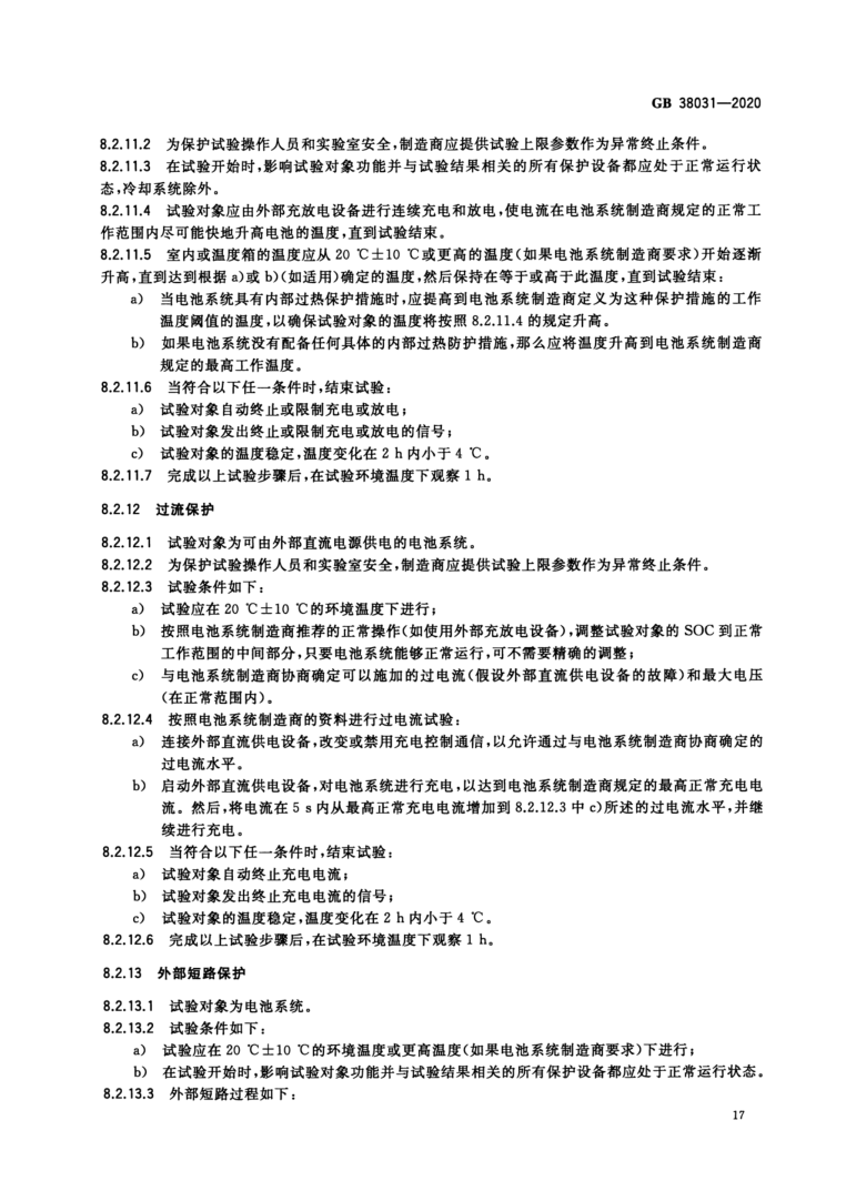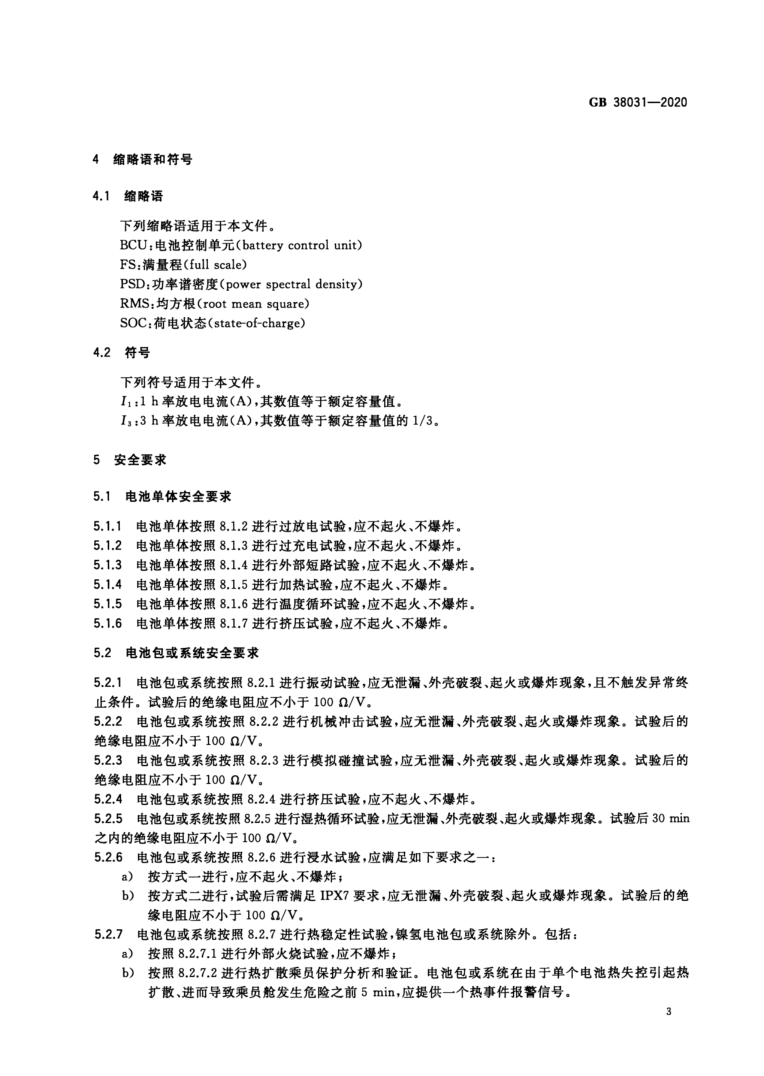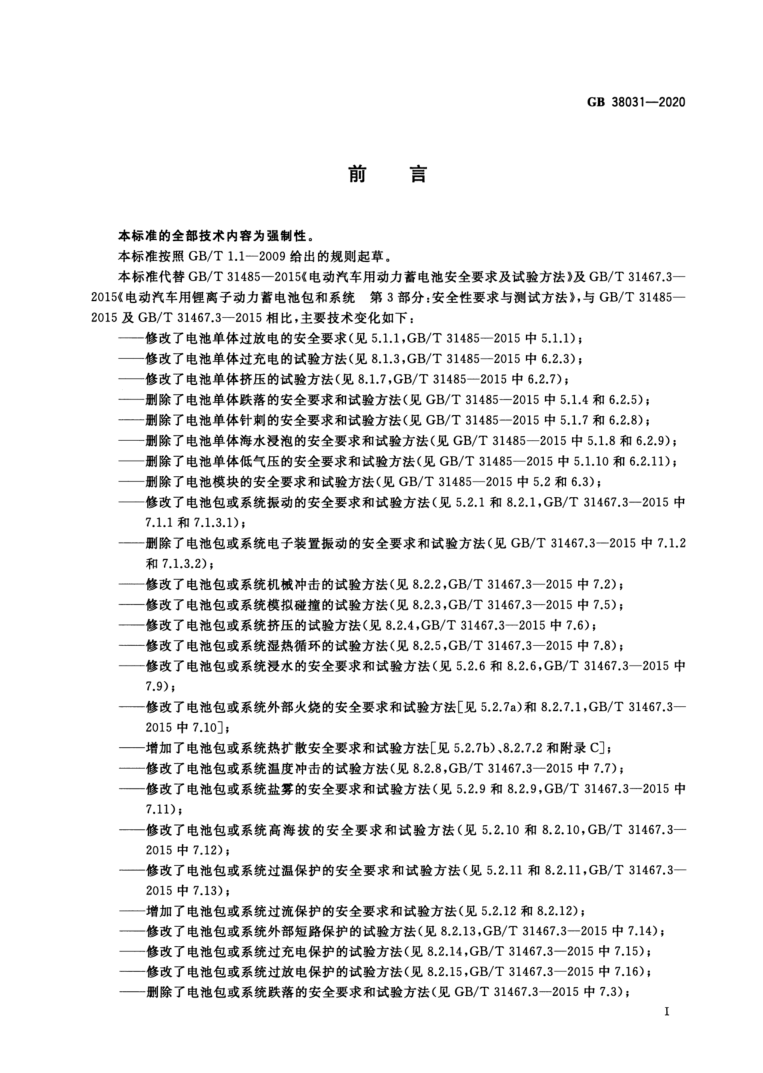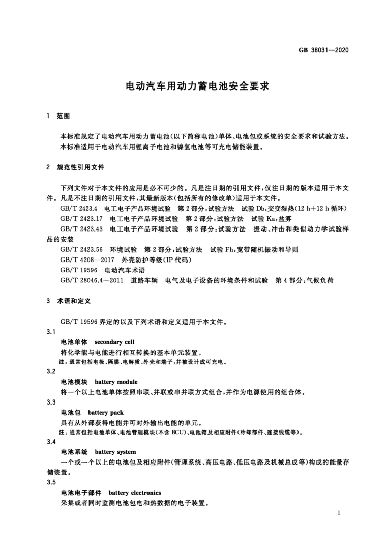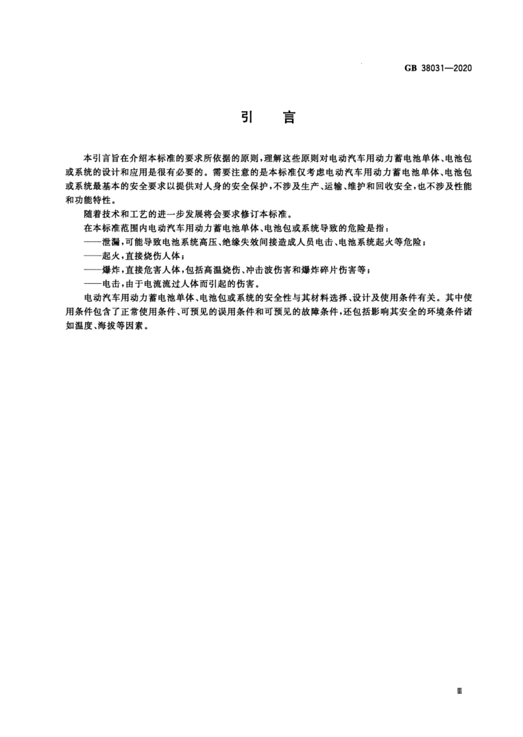 GB38031-2020《电动汽车用动力蓄电池安全要求》