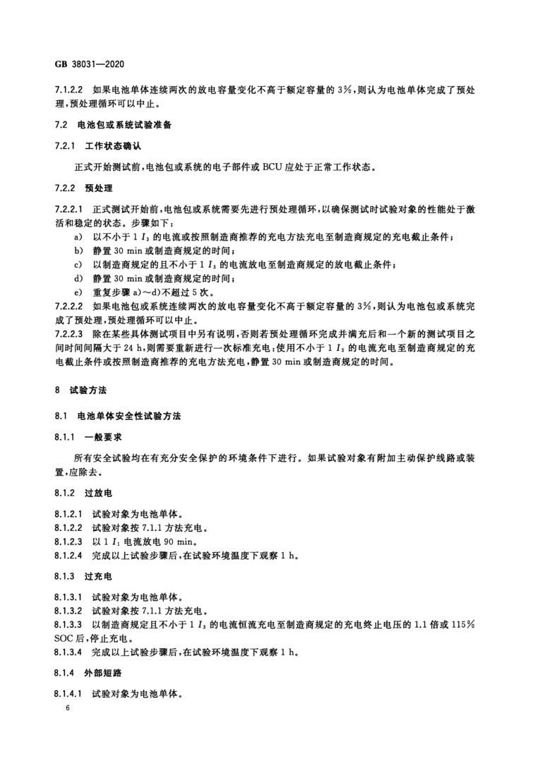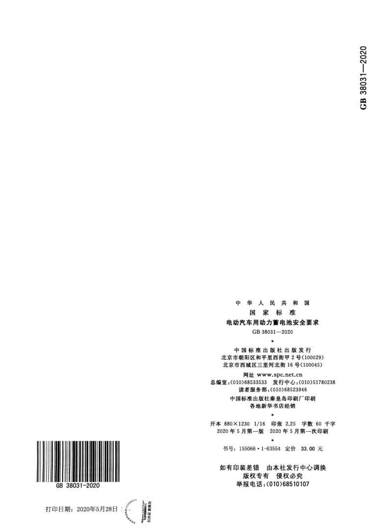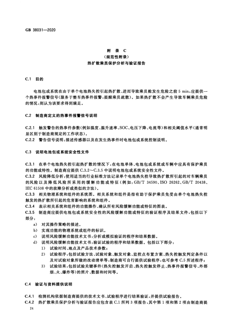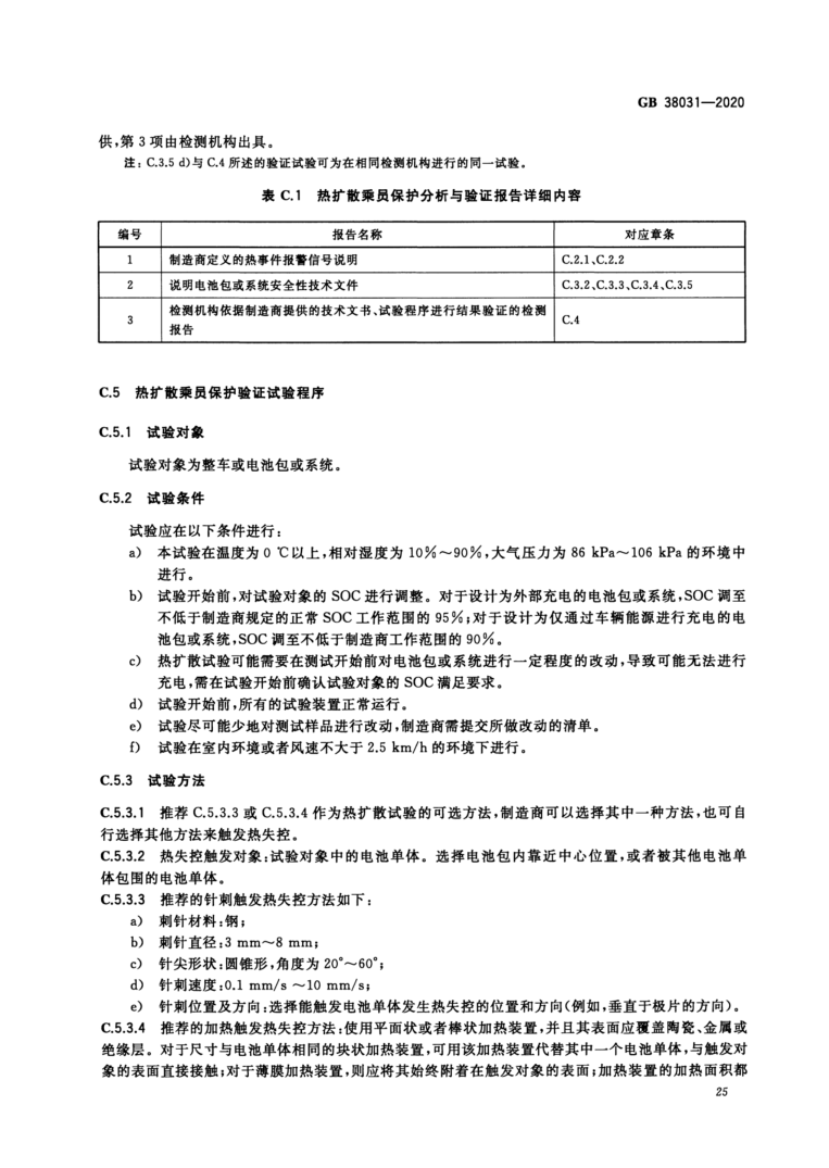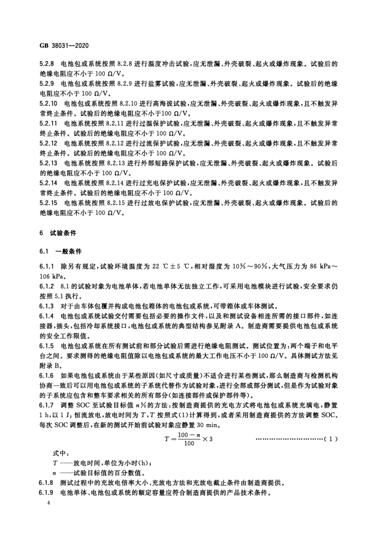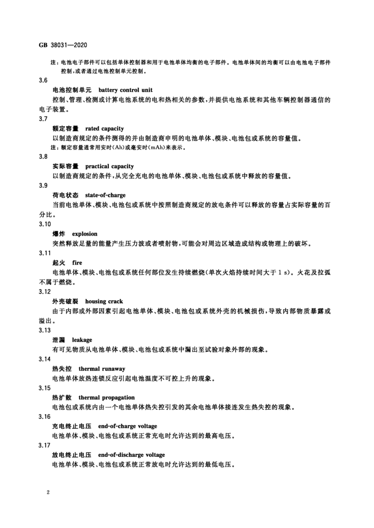 GB38031-2020《电动汽车用动力蓄电池安全要求》